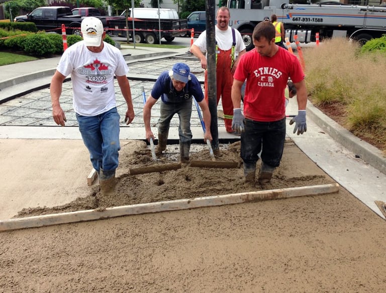 Residential projects, like driveways and patios, typically take 1-3 days, depending on size. Commercial projects may require additional time but are completed efficiently without compromising quality.